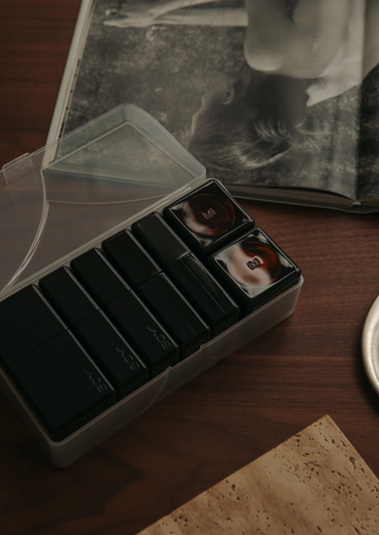Pack your minis into their designated case. Place the kit into your suitcase or slide it into your handbag. The clever case is washable and stackable.